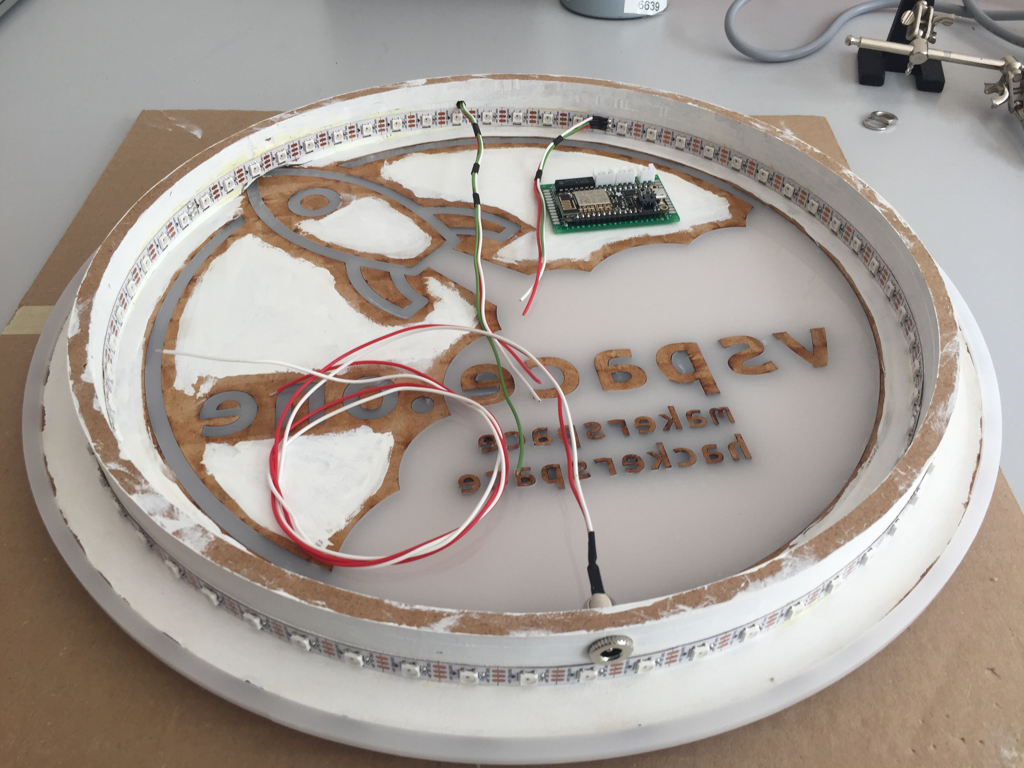 Es soll eine Hintergrund beleuchtetes Version unseres Logo entstehen. Dafür sollen zwei Lasergecuttete Platten aus milchigem Acrylglas und MDF benutzt werden. Für die Beleuchtung sollen RGB-Led Stripes verwendet werden. Es gibt zwei Versionen des Logos, eine positive und eine negative. Dies wird einfach durch das Austauschen der jeweiligen Acryl und MDF Teile erreicht.