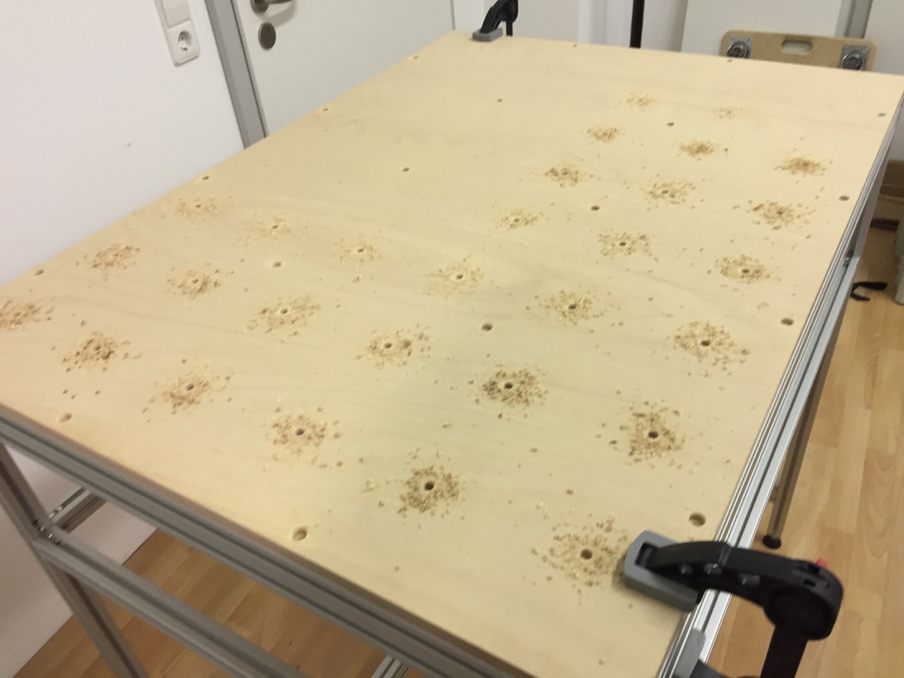 Die Tischplatten bestehen aus 15mm Buche-Multiplex.