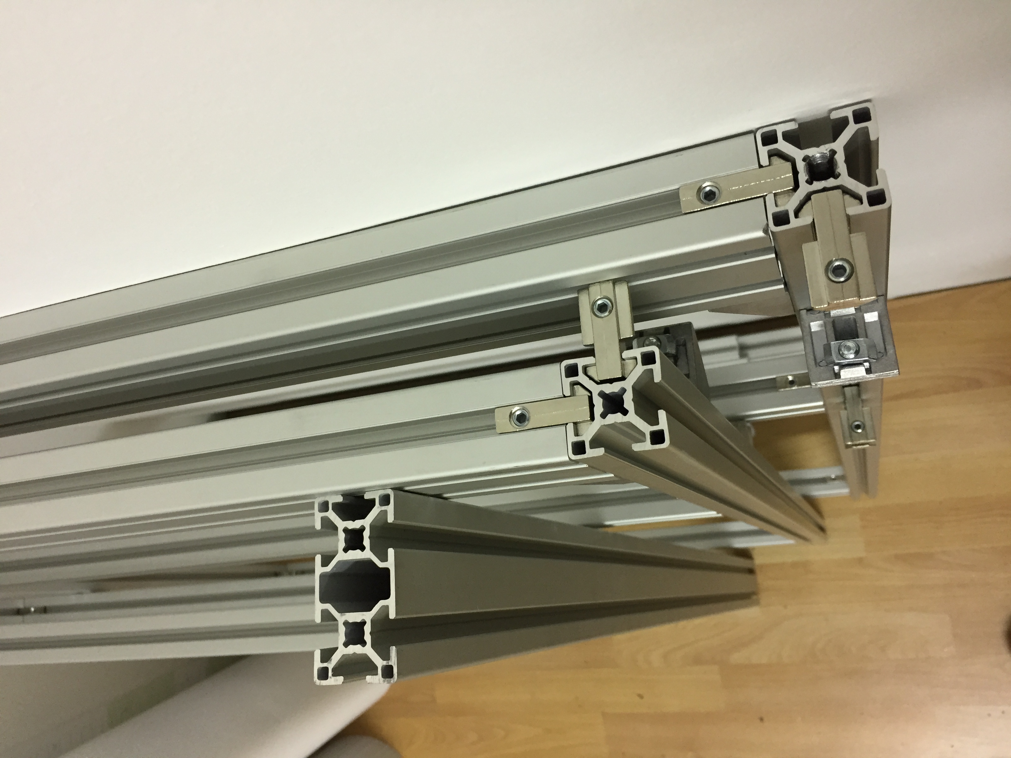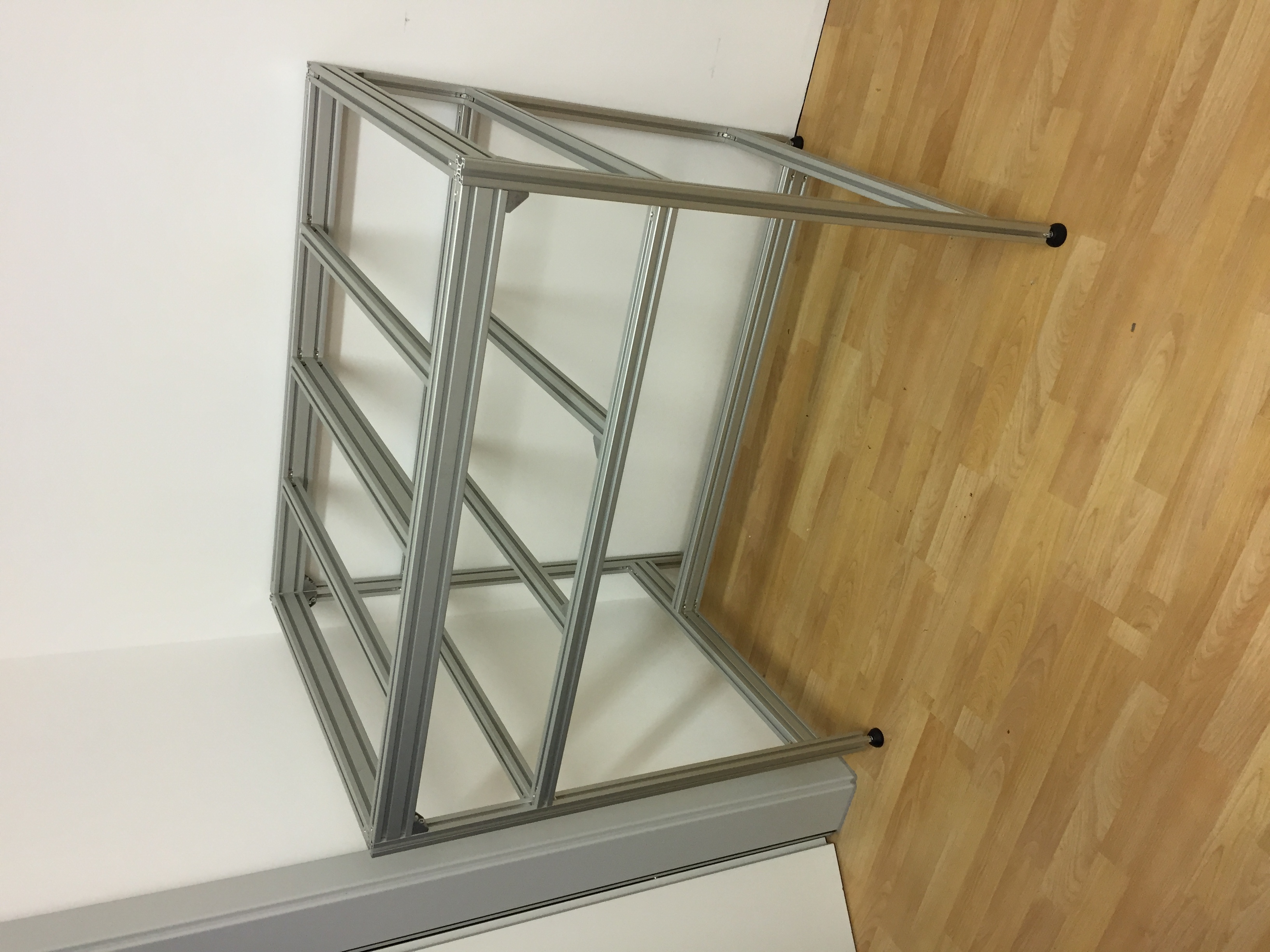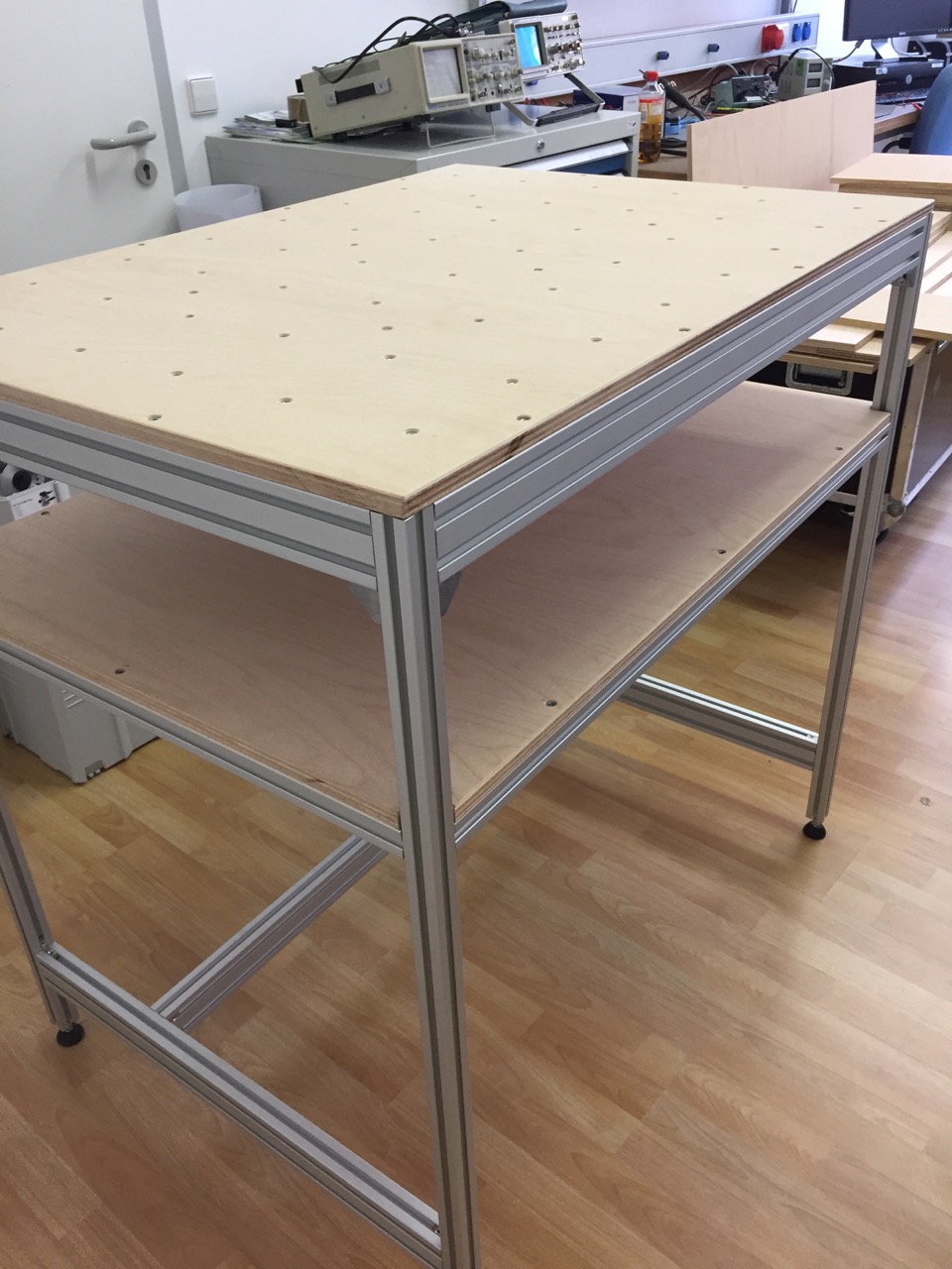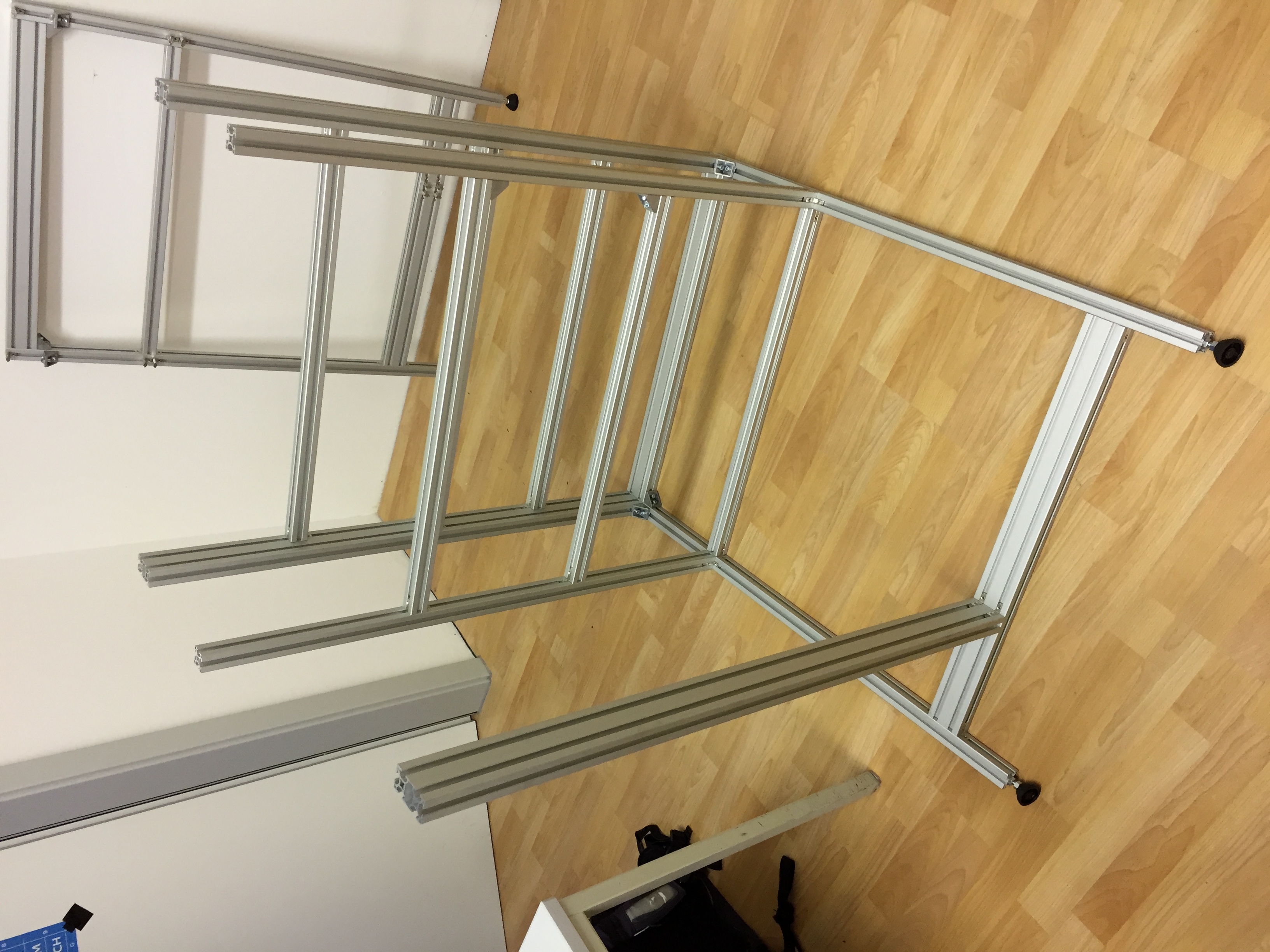 Der Tisch besteht aus Alu-Profilen im 30x30mm / 30x60mm Format mit einer 8mm Nut. (Bosch Profil)