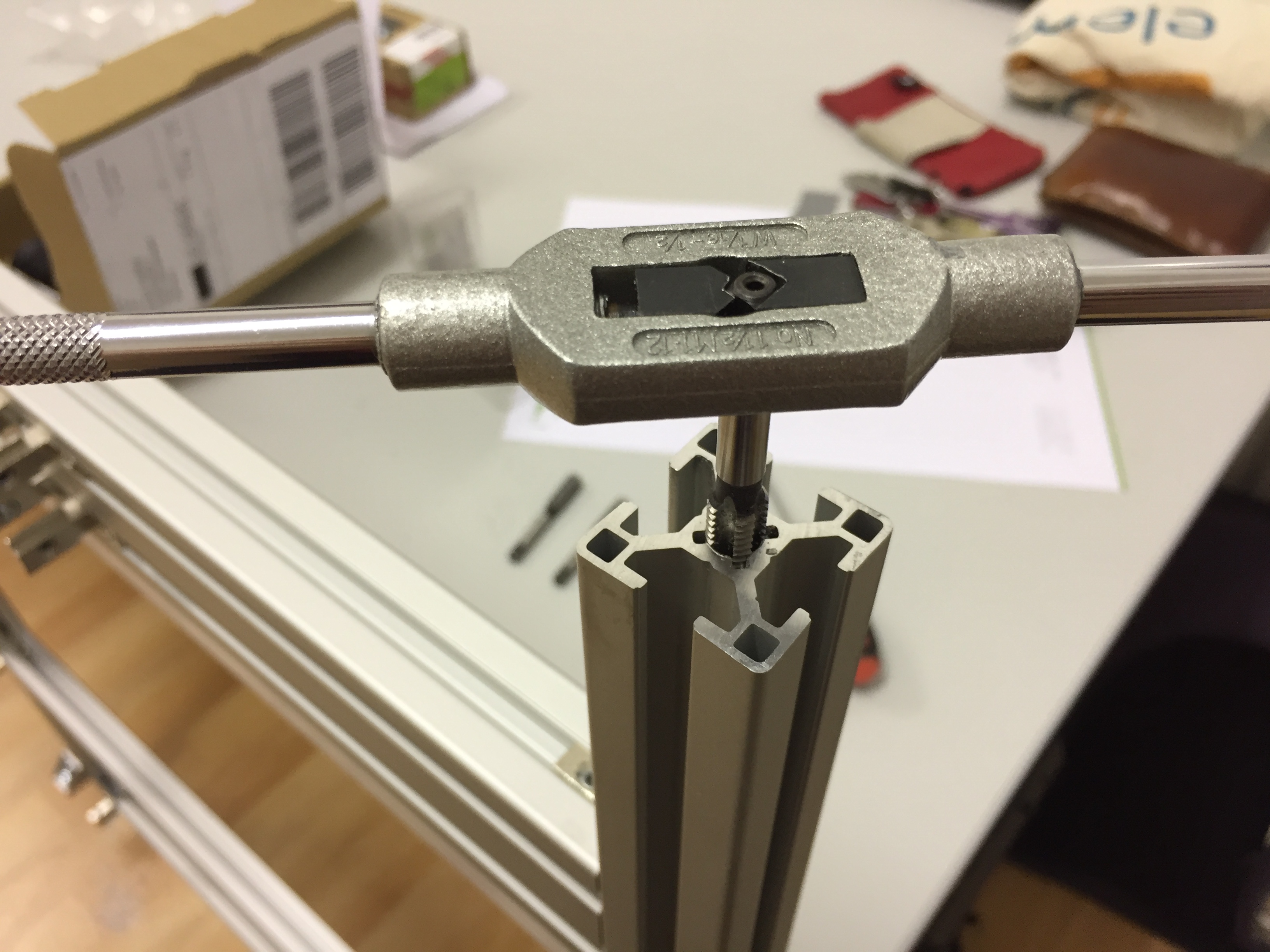 Die Gewinde für die Füße wurden mit einem M8 Hand-Gewindeschneider erstellt.